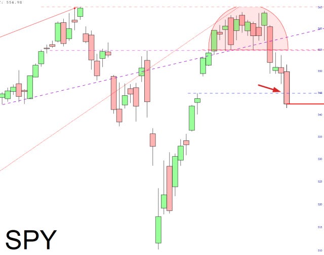 The price gap on the SPY (and $SPX, obviously) offered little in the way of support. We've sliced right through it. This opens up the opportunity for September to be not just good for the bears, but great.