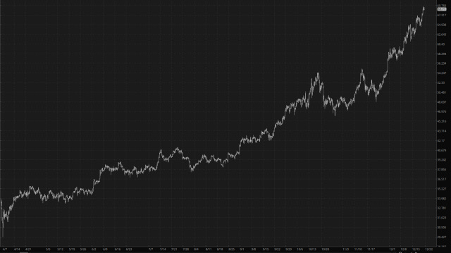 Silver is at a lifetime high too, and ever since Liberation Day, there’s hardly been a downtick in sight. This chart is just amazing.