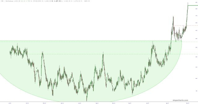 I think my assertion that my Buy Palladium idea was the Trade of the Year is easily defensible. The ratio charts in SlopeCharts were almost entirely to credit for this insight.