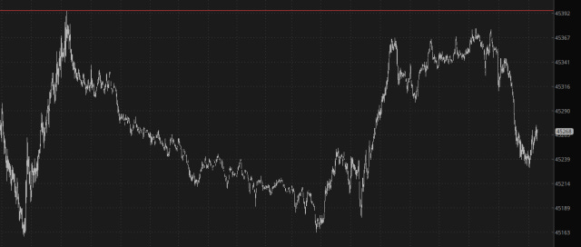 Red equities and green metals. That's all I really ask! And, at the start of Wednesday (which still feels like Tuesday, thanks to another stupid holiday), that's what I've got. Here we see /YM slightly in the red, pre-open: