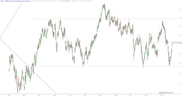The XOP ETF is in the throes of what I believe will ultimately be a gargantuan top. Short-term, I've got a stop-loss at the 136.25 level (I bought June puts yesterday).