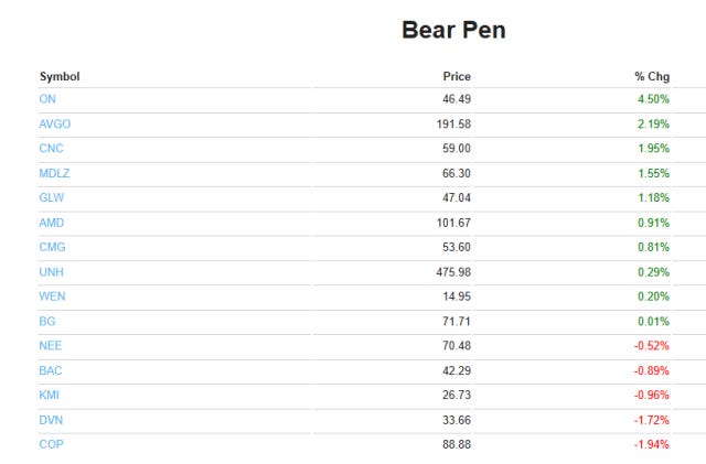 We got some of it on Wednesday, of course, and the strength was reflected in my Bear Pen, in which most equities went higher.