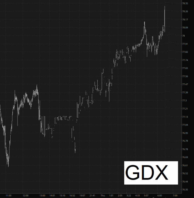 As a follow-up to yesterday’s post, I wanted to mention a very close call with my DUST position this morning. You see, gold went on to record highs this morning, and the gold miners were cheerfully coming right along for the ride. It seemed like my DUST position would live up to its name.