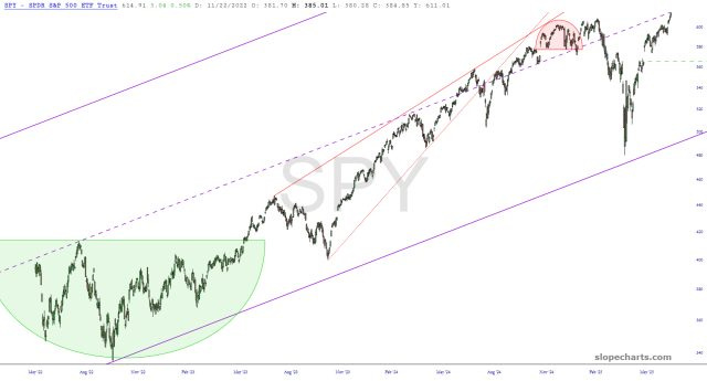 As we sit here with the most expensive stock market in history, let's take a look at some ETF charts.
