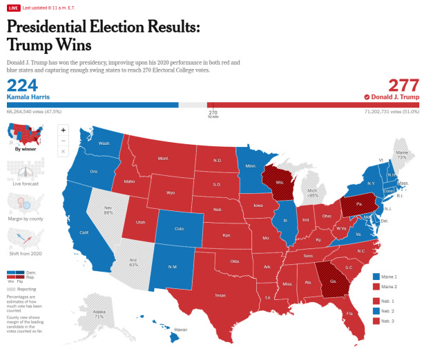 Market Mayhemthe election ignites a mega-rallySlope of HopeNov 06, 2024∙ Paid42ShareWell, as they say: that's that! The GOP has re-captured the Presidency, the Senate, and perhaps the House (it'll take longer for those results).Of course, it isn't like this wasn't telegraphed to us all in advance.Continue reading this post for free, courtesy of Slope of Hope.Claim my free postOr purchase a paid subscription.PreviousNext