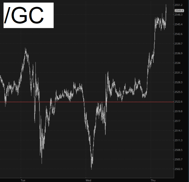 Good morning, everyone, and welcome to the second half of our shortened trading week. As a reminder, the three-legged investment outlook I have is simple: bullish gold, bullish bonds, bearish equities. This week, it is playing out nicely!