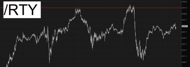 Well, it's time to face facts: the week is nearly over, and the market has gone positively nowhere. Below we see the small caps over a full five-day period, grinding away and essentially winding up precisely where it was on Monday, in spite of plenty of news in the meantime.