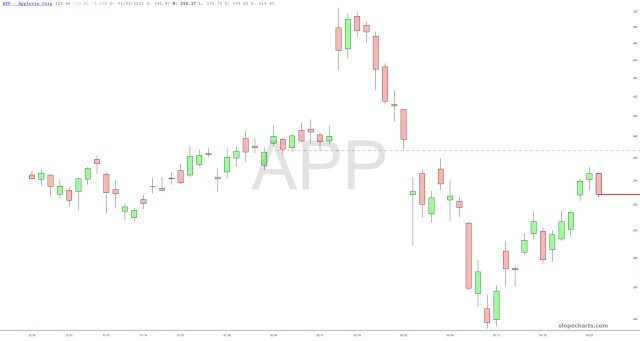 Not a bad day so far! After some initial wiggling and waggling, we've got a bit of selling going on, with the /NQ down over 1% (which these days is considered a crash). Here are five charts that are doing particularly nice about-faces, which I appreciate.