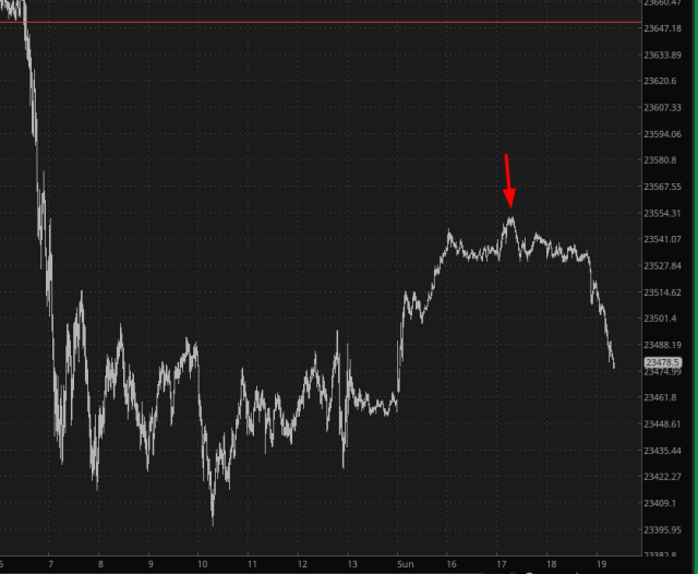 The /YM (that is the Dow 30 futures) had reached a triple digit gain but then started withering away. As of this composition, the /YM Is up a mere 0.08%, and since I own a bunch of October 17th put options against DIA, I'm obviously hoping that Dow gets smacked down hard sometime during the next seven weeks, which seems awfully likely.