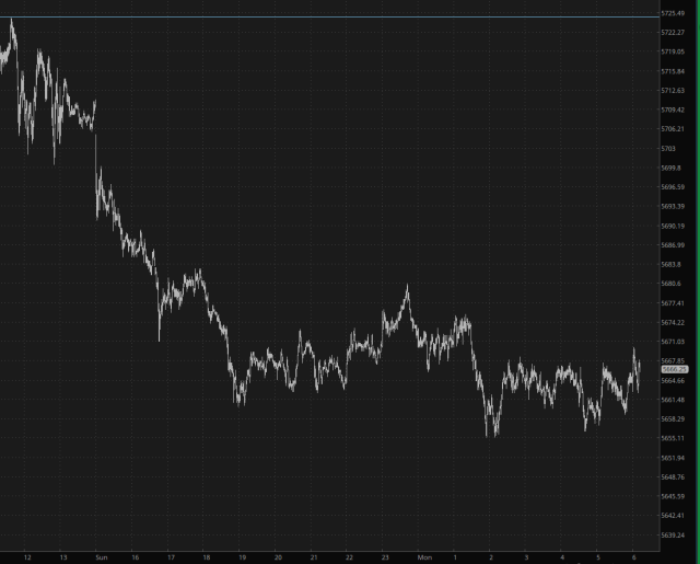 For the first time in two weeks, I don't have to grit my teeth in anticipation of a horrible opening bell. We've got drops of almost 1% across the board, which I'll gladly take. Here's the slow burn on the /ES all night, away from its absolutely ridiculous lift last week: