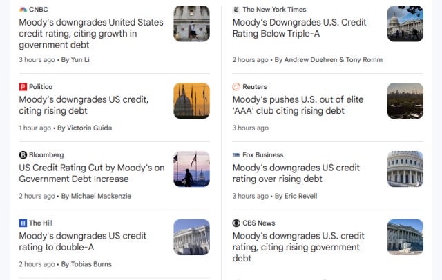 Sovereign Manimportant after-hours news!Slope of HopeMay 17, 2025∙ Paid73ShareMoody's: "Ratings desk, can I help you?"Caller: "Yeah, he's out."Moody's: "Who's out?"Caller: "Knight. He's dumped his IWM puts and has lightened way up."Moody's: "Got it. Thanks. We'll take it from here."Continue reading this post for free, courtesy of Slope of Hope.Claim my free postOr purchase a paid subscription.PreviousNext