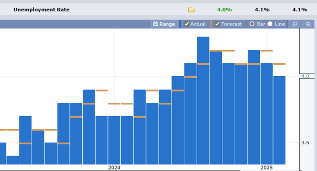 The monthly jobs report came out, and the unemployment rate itself is just a touch under the prediction, logging in at 4.0%.
