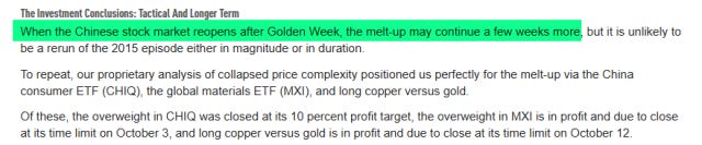 I have a vivid illustration of the difference between me and many other market observers. Just yesterday on the Goldman-loving permabull site ZH, one chap deigned that, yes, the Chinese stock market mega-rally might peter out "a few weeks" after Golden Week is over. In other words, in about a month.