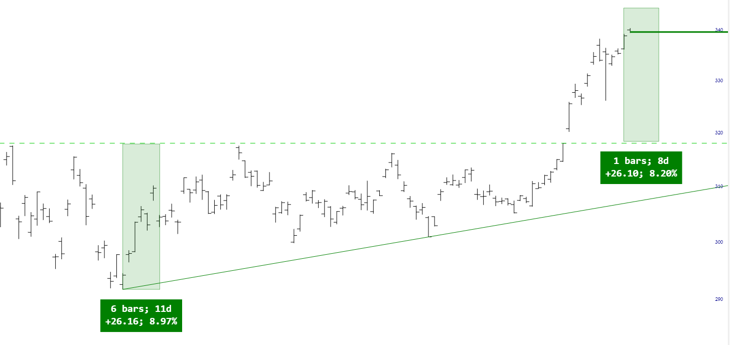 Now that I've got THAT out of the way, I want to say that the measured move of gold (by way of GLD, below) is so close to complete as to compel me to feel it needs a rest. I've said the same in recent days, and yes, it keeps tromping higher, but I'm doubling down on my disposition.