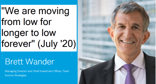Let’s talk about the bond market and yields. We will kick off with the number one guy in fixed income at the investment giant Charles Schwab. Only the Lord knows how much this guy is paid, so he must be brilliant. Let’s see what he was saying in July 2020: