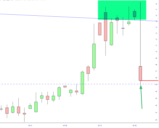 Thus, the right triangle pattern isn't moot. On the contrary, it's still very much in play, and the monster top of /CL, which seemed to be dead as a doornail this weekend, is worth considering once more. I actually love bearish energy plays, and I'm relieved to have shorted so much XOP early on Monday.
