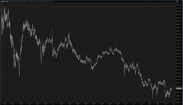Following Friday's absolutely grotesque and soul-crushing mega-rally (since, as we all know, a 0.25% reduction in interest rates will solve ALL our problems instantly in a few weeks), it's encouraging to see blood on the screen this morning. The /NQ has been slowly bleeding off from its Friday's highs.