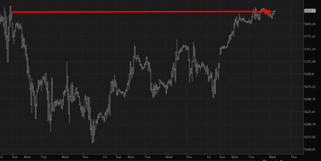 How's that for a soft sell? But I'm serious. As I'm typing this, the /ES is up 0.07% and the /NQ is down 0.04%. Am I supposed to come up with some lucent insight based on that? Over the course of nearly three weeks on the S&P 500, we've netted out..........nothing.